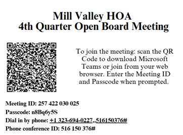 An Open Board Meeting has been scheduled for November 12th, 2025, at 6:30pm. The meeting will be held via Microsoft Teams. Executive Session will take place prior to the meeting.